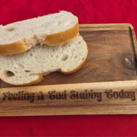 Image is laser engraved on a food safe acacia cutting/serving board.