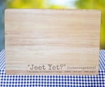 The board is laser engraved with the phrase "Jeet Yet?", a playful expression often used in Southern dialects, meaning "Did you eat yet?" This phrase is popularized by comedian Jeff Foxworthy, known for his humor that highlights Southern culture and language. The laser engraving adds a personalized and decorative touch, making it not only a practical kitchen tool but also a conversation starter. Whether you’re a fan of Foxworthy’s comedy or appreciate unique kitchenware, this cutting board combines functionality with cultural charm.
